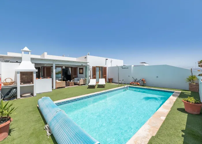 La villa Las Buganvillas Playa Blanca dispose d'une terrasse avec vue sur la mer, ainsi que d'une piscine.